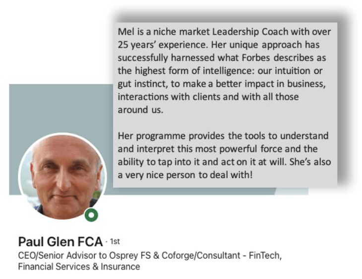 Blue-chip clients such as QBE Insurance, Bauer Media, Liberty Global, Cardif Pinnacle, Global Radio and many more over the years have entrusted their leadership development to Mel’s guidance.