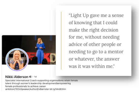 Starting with the award-winning DNA Light Up journey, Light Up for Leaders coaching will show you how to accurately interpret and reliably connect with your inner knowing. In business as well as at home. Practically. Consistently. And with the most remarkable results.