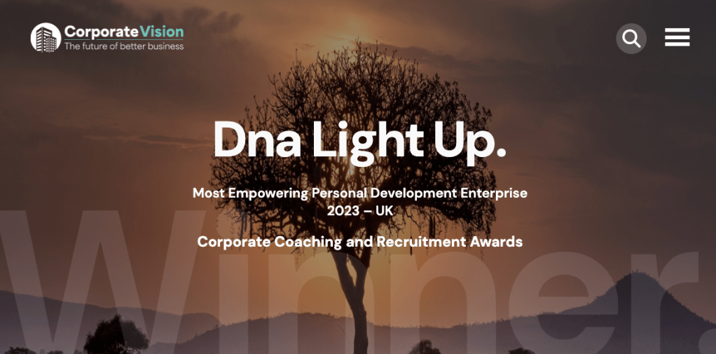 DNA Light Up has been confirmed “Most Empowering Personal Development Enterprise 2023 – UK” Corporate Coaching and Recruitment Awards, Corporate Vision Magazine, January 2024.